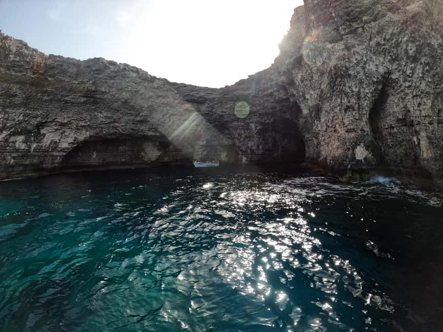 – As we come around the island we will finish the tour by visiting this amazing little beach – The Crystal Lagoon, which is right behind the Blue Lagoon. It offers amazing swimming and snorkeling spots. Two caves can be seen here. One special cave lies just under the Saint Mary’s tower and as you swim inside, just at the end of the cave lies a sandy beach. The guide will again come with you inside the cave since he knows it better than anyone. The other cave is open from both sides so anyone can swim right through the other side and therefore it is less dark and easier to swim through. This lagoon is also a perfect spot for those who love cliff jumping. The tower of Saint Mary is also seen from here which is only a 10 minute walk. Just a little bit outside the lagoon lies a military wreck at a depth of 25m. It is visible from the boat when the seas are clear.