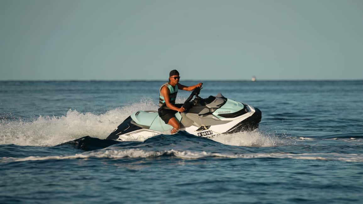 Meet your guide for a full briefing and to get kitted out in your safety equipment. Then, get onboard a powerful Sea-Doo GTX 130 2024 or Sea-Doo GTX Pro 2025 jet ski and get ready to speed across the water.